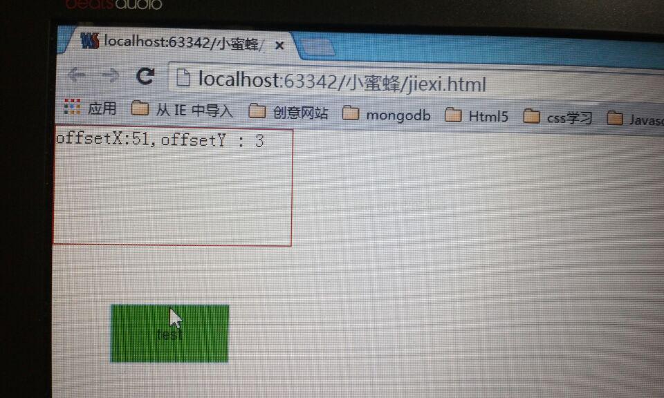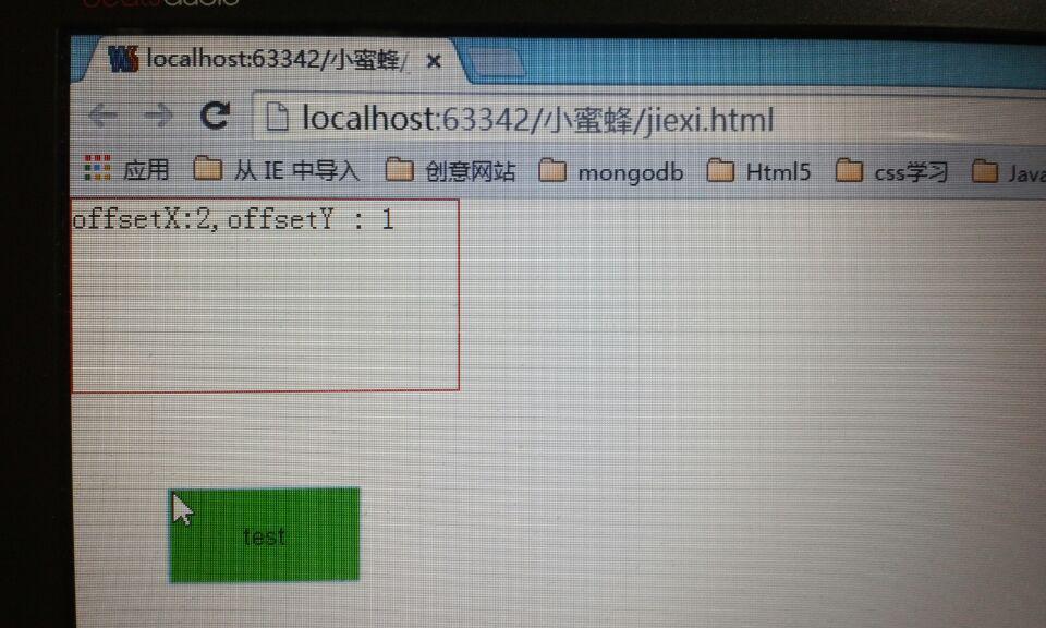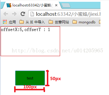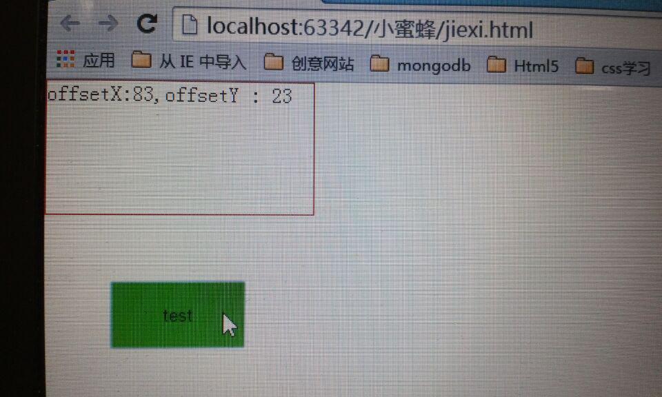 相信看到这里应该能明白 offsetX 和 offsetY 是获取的什么值了吧,获取的就是鼠标相对 test 这个按钮的 x 坐标和 y 坐标