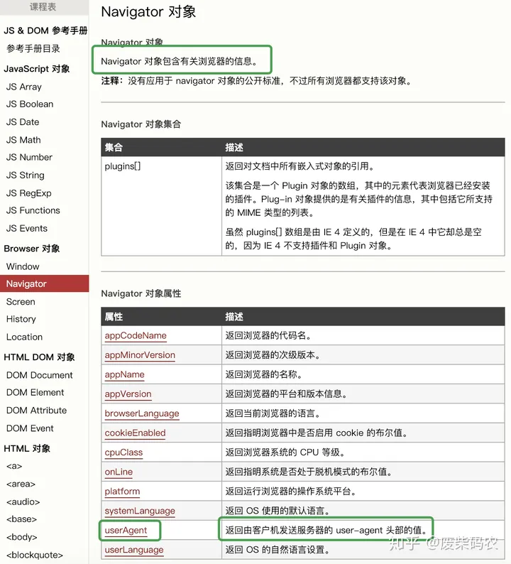 其中,一些常用设备访问时返回的 userAgent 属性如下: